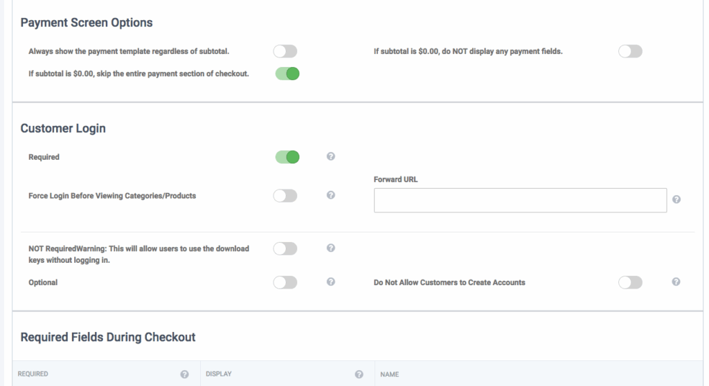 • In the “Customer Login” section, select either “Optional” or “Not Required.”