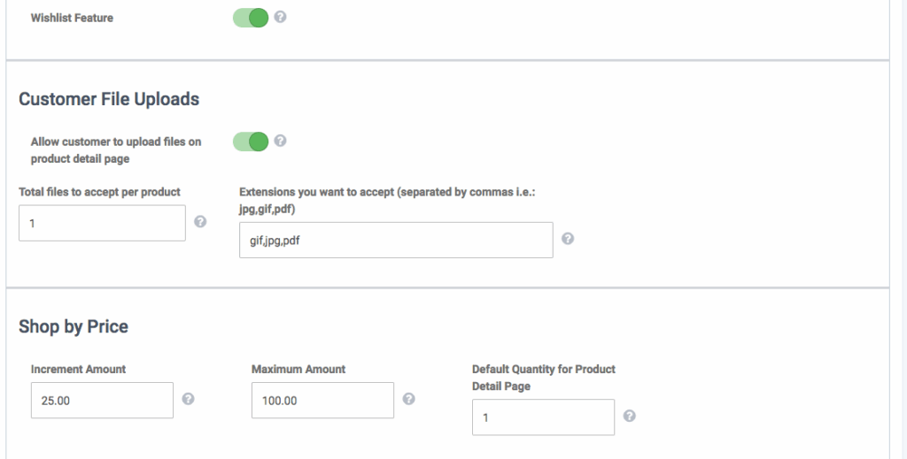 - Set “Allow customer to upload files on product detail page” to “Yes.”