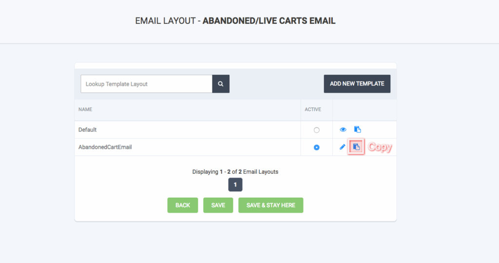 - If an email template doesn’t show an ‘Original’ line, only a Default line, you can create a copy of the default template. To do this, click on the Copy link.
