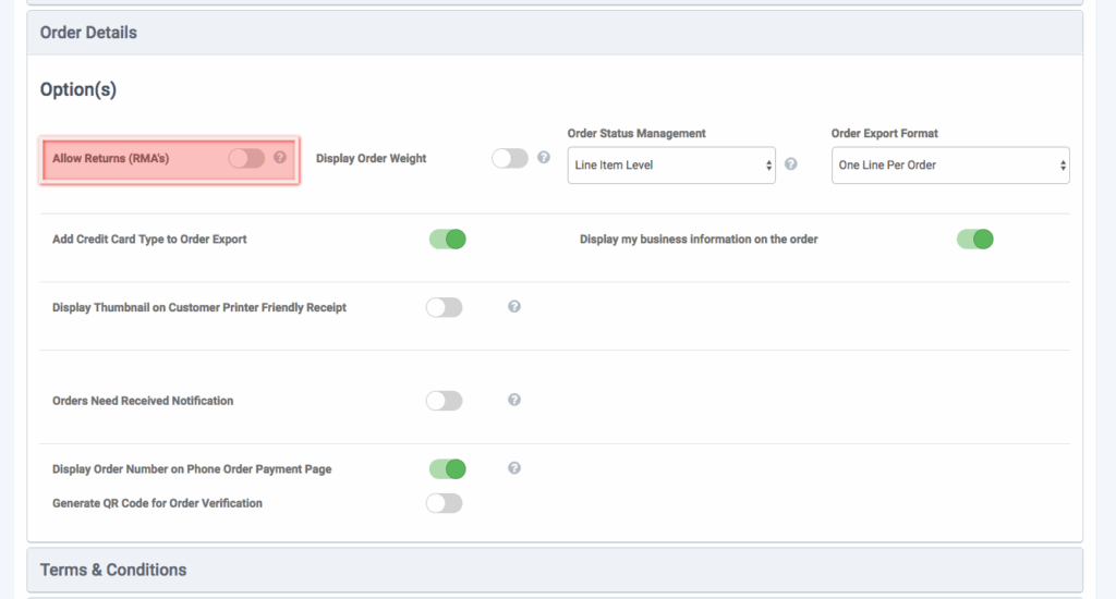 - Make sure that “Allow Returns (RMA)” is set to “Yes.”