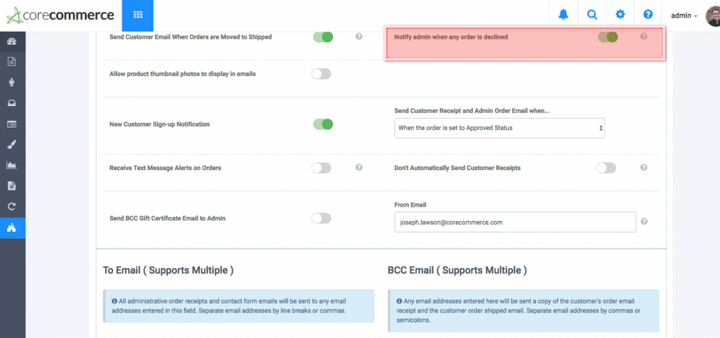 - Make sure “Notify admin when any order is declined” is set to “Yes.”