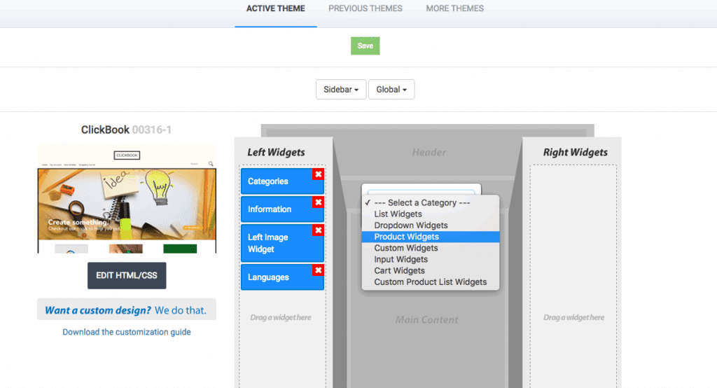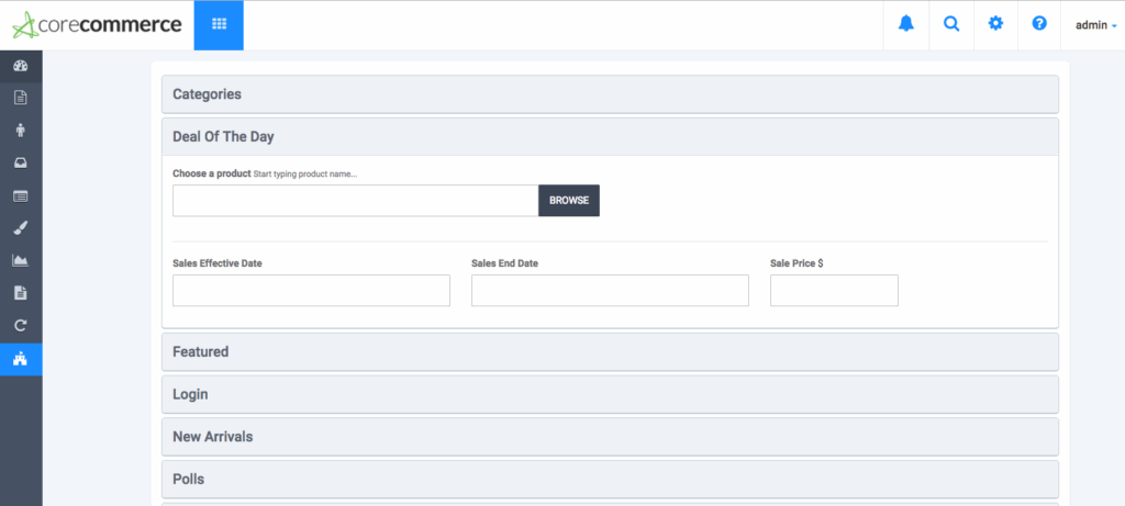 • Choose the “Product Widgets” option and then drag and drop the “Deal of the Day” widget to the left or right widgets panel.
